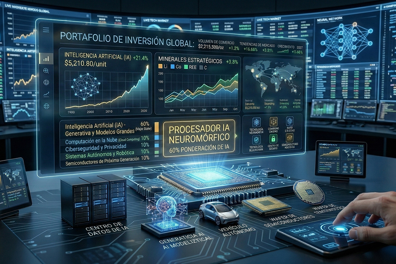 Integramos activos internacionales, oro digital, minerales estratégicos y sectores tecnológicos para crear portafolios alineados con las tendencias económicas globales.